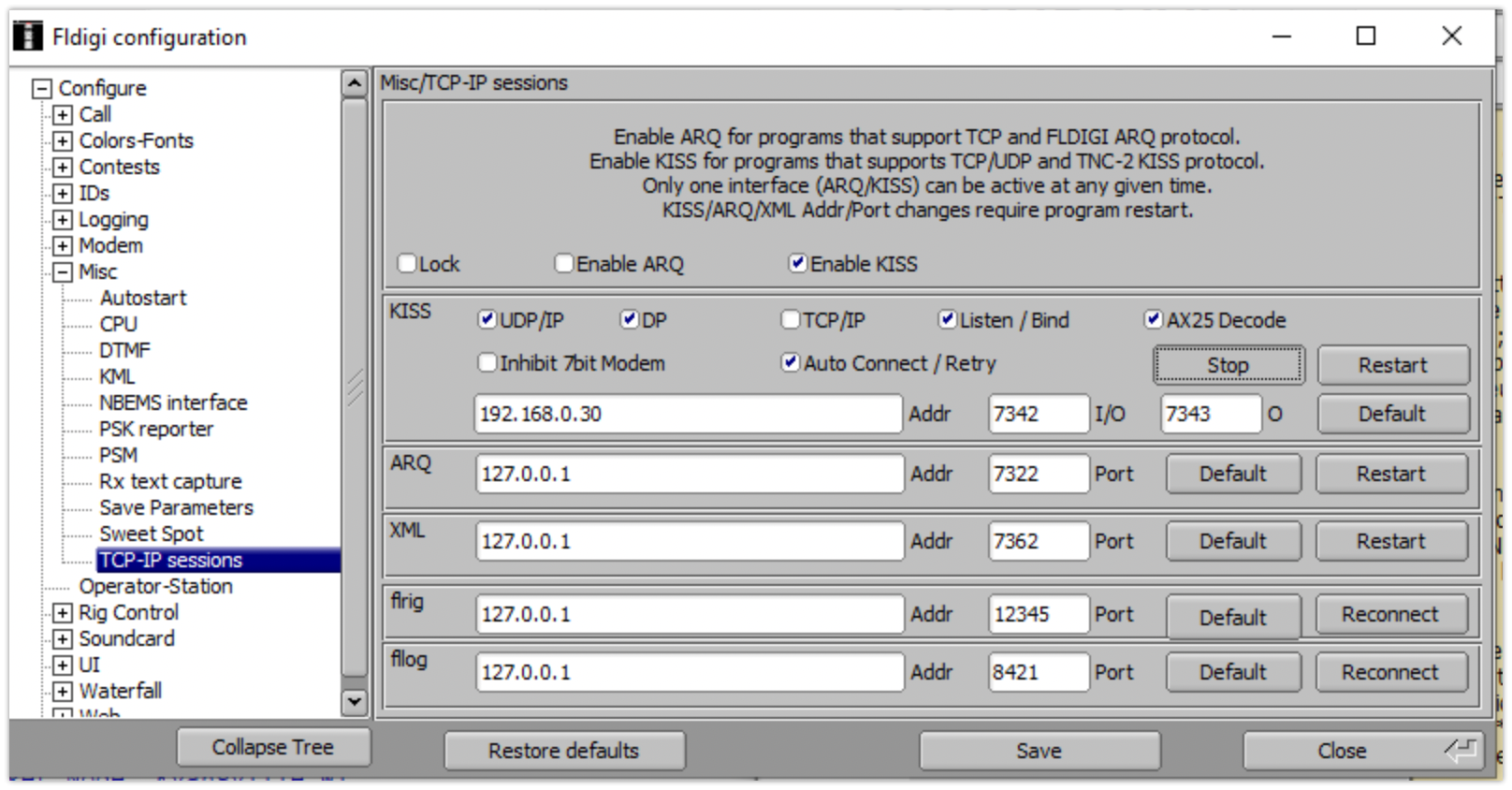 - The `ADDR` is of the machine running fldigi and the fldigi port.