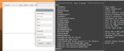 You'll be connecting to your own node locally, not via RF, so in the dialog box that pops up, you'll want to enter the appropriate info. Some of this will come from the user information that you put in the telnet section of your ~/.config/linbpq/bpq32.cfg file, so you may want to open that file for reference.